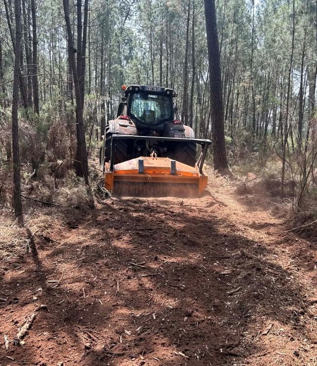 Dégagement d’emprises, broyage de rémanents et travaux forestiers pour faciliter l’accès et l’intervention des services de secours.